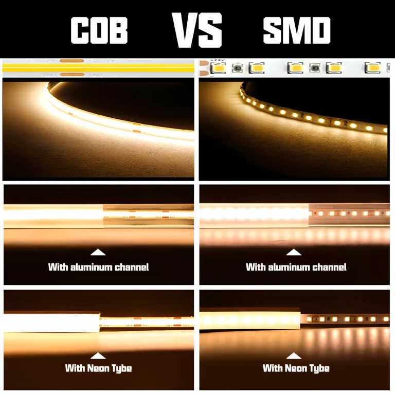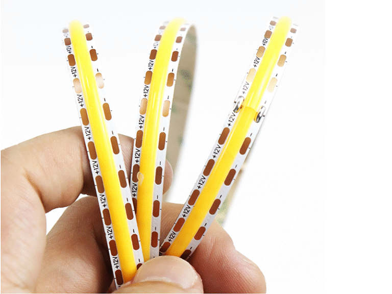 Mini Cutting cob led strip light is a high-density flexible strip that uses Chip On Board (COB) packaging technology. It has the characteristic of ultra short cutting units and can support fine cutting as small as 8.33mm, greatly improving the flexibility and accuracy in customized lighting. Compared to traditional light strips, COB light strips emit more continuous and uniform light, without visible bead particles, and have a softer and more comfortable visual effect. At the same time, they have advantages such as high color rendering, high brightness, low heat, and long lifespan. With its excellent flexibility and small cutting units, LED COB Mini Cutting light strips are particularly suitable for precision installation environments, such as furniture embedded lighting, display cabinet lighting, advertising word lights, creative linear lighting fixtures, etc., providing a more beautiful and detailed light source solution for high-end lighting.