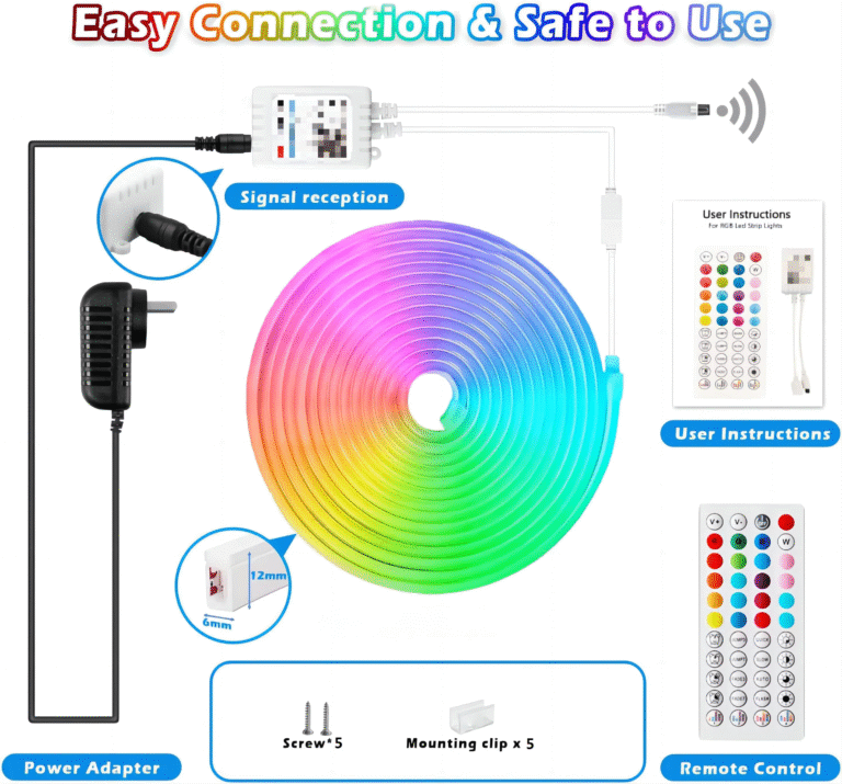 Neon Color Box Set is an intelligent control light strip set that integrates pre wired neon led tape, controllers, remote controllers, and USB powered mini programs.By scanning the code, users can enter the mini program and easily achieve functions such as color changing, dimming, and music rhythm;Paired with clear wiring diagrams and user interface displays, even beginners can quickly get started, creating a personalized atmosphere lighting experience.