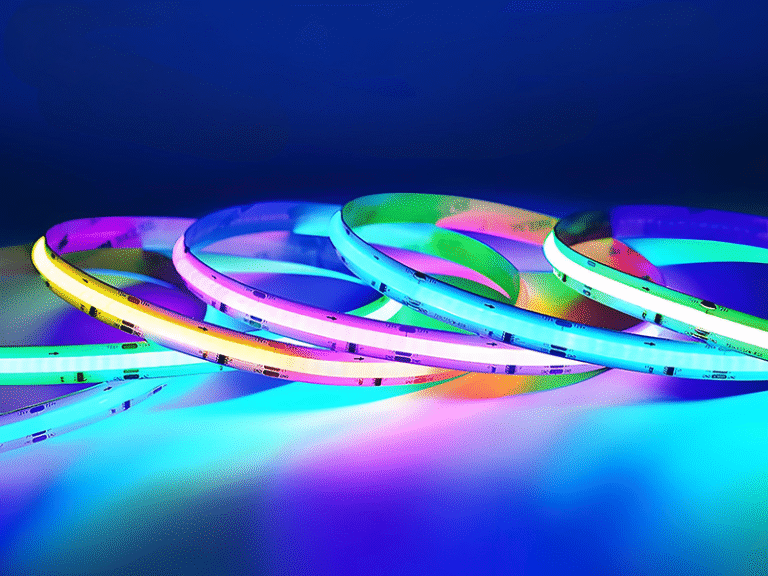 The COB Standard RGBW & RGB led strip is a high-performance lighting solution that combines high brightness, uniform illumination, and vibrant color-changing capabilities. Utilizing advanced Chip-on-Board (COB) technology, it delivers smooth and consistent light output without visible light dots or dark spots, ensuring a soft, flicker-free visual experience. The RGB version offers dynamic red, green, and blue color mixing, ideal for creating vivid and customizable lighting atmospheres. The RGBW version adds a dedicated white light channel, enabling more natural and refined color tones while also supporting functional white lighting. Compatible with a wide range of controllers, including remote, app, and music rhythm control, COB Standard led stripe RGBW&RGB is perfect for residential decor, commercial spaces, window displays, exhibitions, and stage lighting. It’s an ideal choice for those seeking a seamless and immersive lighting effect.