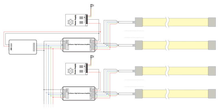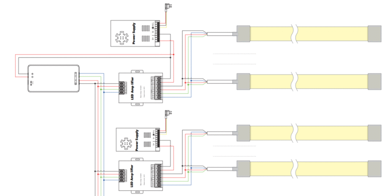 The Top Bend led neon strip typically uses a 12V or 24V DC power supply to ensure stable and safe operation. Its compatible controllers support various modes, including single-color dimming, tunable white, and full-color RGB/RGBW control. These controllers can be operated via remote control, mobile apps, or DMX systems to achieve diverse lighting effects such as fades, jumps, and dynamic animations, meeting the needs of different lighting and decorative applications.