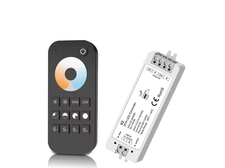 The LED COB Tunable white led strip lights requires a dedicated CCT (Correlated Color Temperature) controller to achieve smooth color temperature adjustment, typically from warm white (e.g., 2700K) to cool white (e.g., 6500K). The controller supports various control methods such as remote control, wall-mounted touch panels, rotary dimmers, mobile app control, and even integration with DMX or 0-10V systems.COB CCT dimmable led strip lights Ideal for ambient lighting, architectural lighting, and studio setups. Some models also feature zone control, memory function, and scheduled automation for smarter lighting.