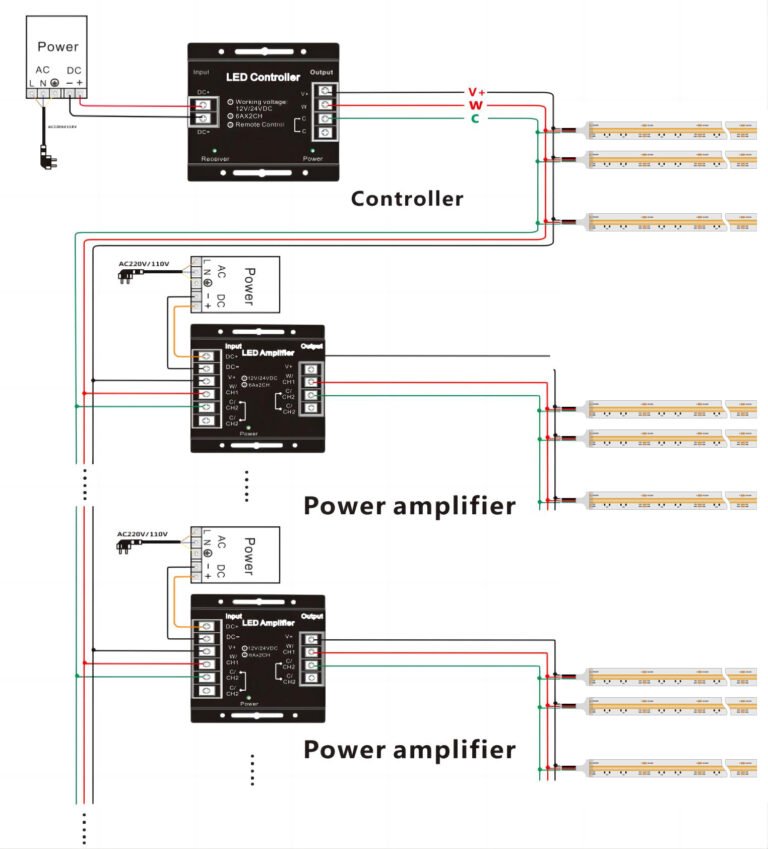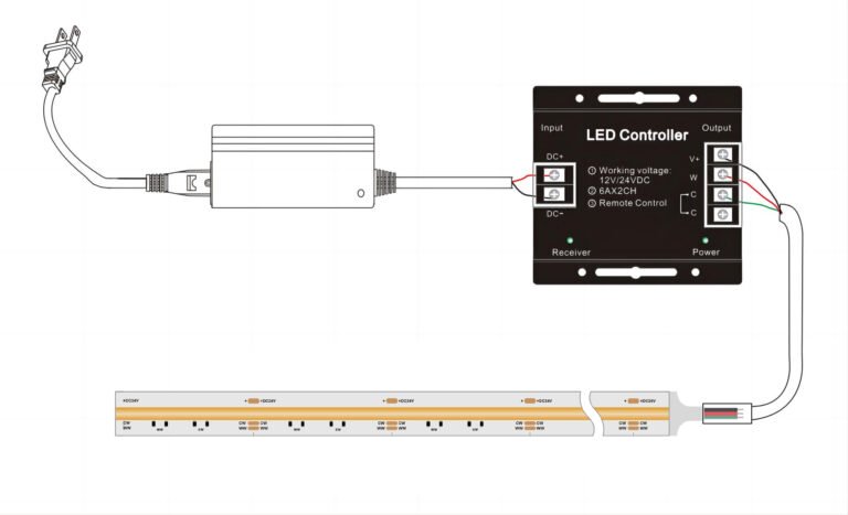 The working voltage of tunable white led strip is DC12/24V. it needs the constant voltage led driver (LED power supply) to light up as below.